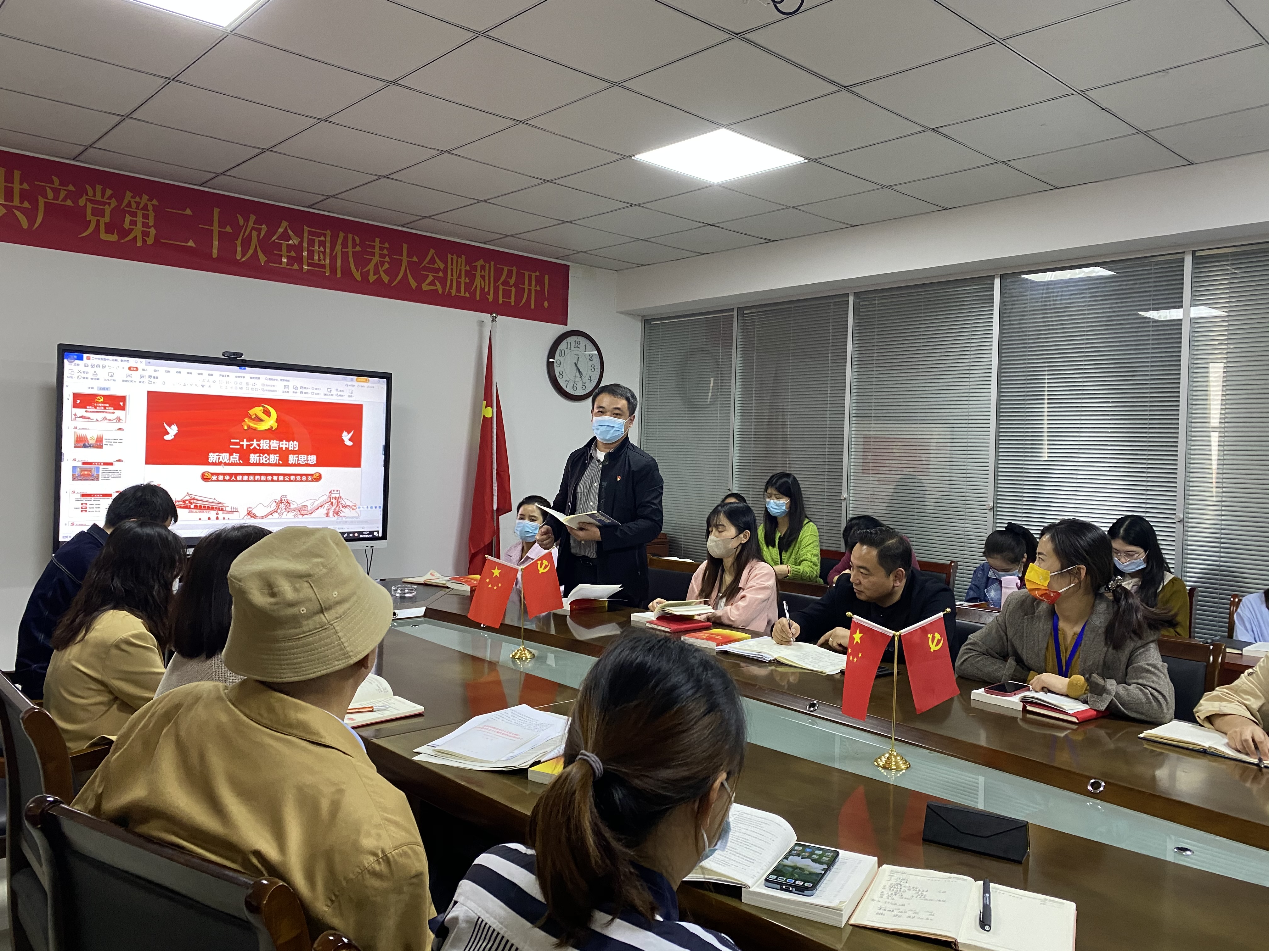 最后,金沙澳门(中国)唯一官方网站党总支书记何家乐同志作了重要的学习分享,何书记说到党的十八大以来的十年时间是金沙澳门(中国)唯一官方网站集团快速发展的时期,这离不开党的引领,我们深刻感受着党的恩情。二十大报告给我们医药行业未来发展方向做出了明确的指引,人民健康是民族兴旺、国家强盛的重要标志,也是金沙澳门(中国)唯一官方网站发展的战略目标。近年来疫情对我们行业虽然有所冲击,但是在党的关怀和指引下,我们沿着产业发展方向,不断增强产业链供应链韧性,发展持续增速。在今后的发展过程中,我们将保持初心,继续努力,坚定规范企业各项管理,加强数字化建设和企业创新能力,以商业和零售为基石,不断完善产业链供应链全链条体系,实现党建引领企业高质量发展,服务百姓健康谱写新的篇章。